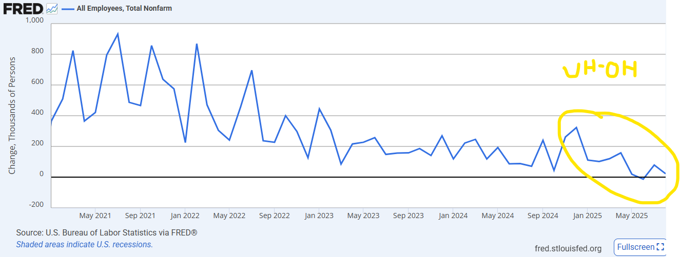 One is the closing of the southwest border and the deportation of hundreds of thousands of unauthorized migrants. Many Americans may favor those moves, but the economic reality is Trump’s immigration policy reduces the size of the US labor force, which means lower job growth and overall growth. The other Trump factor is tariffs, which have massively increased uncertainty and added new costs for thousands of American businesses. When businesses can’t confidently forecast their numbers, one of the first things they do is stop hiring.
