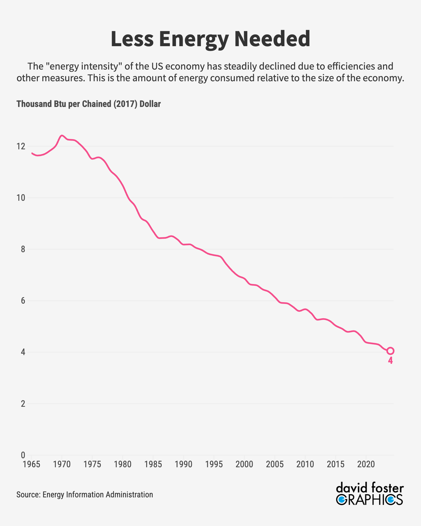 The United States isn’t as vulnerable to a foreign energy shock as it was during the energy crises of the 1970s. That’s largely because of huge efficiency gains. The “energy intensity” of the US economy has dropped by 68% since 1970, according to Dept. of Energy data. That means energy costs are a much smaller factor in everything the nation produces. Many factors account for that, including more efficient cars and other types of transportation, better building insulation, and many technological breakthroughs that save energy.