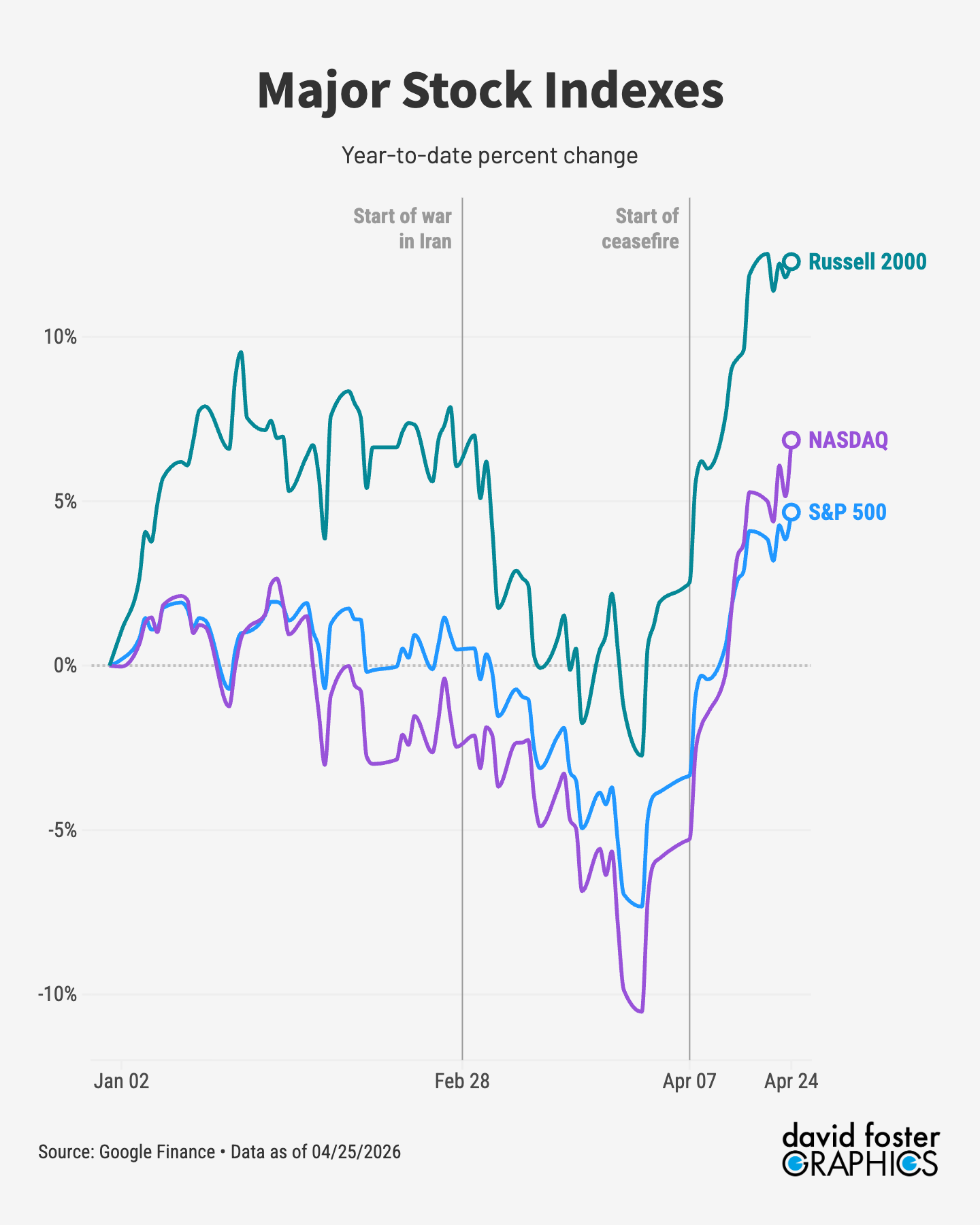 Stocks plunged during the first month of the war, but they’ve since recovered and are positive for the year. The artificial-intelligence revolution is going gangbusters regardless of the war, and investors see big gains in the future. That’s why stocks are rising. But it stands to reason that stocks would be higher still without the war.