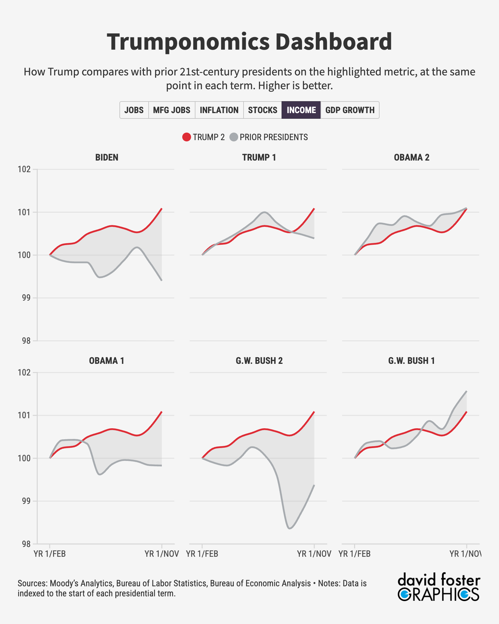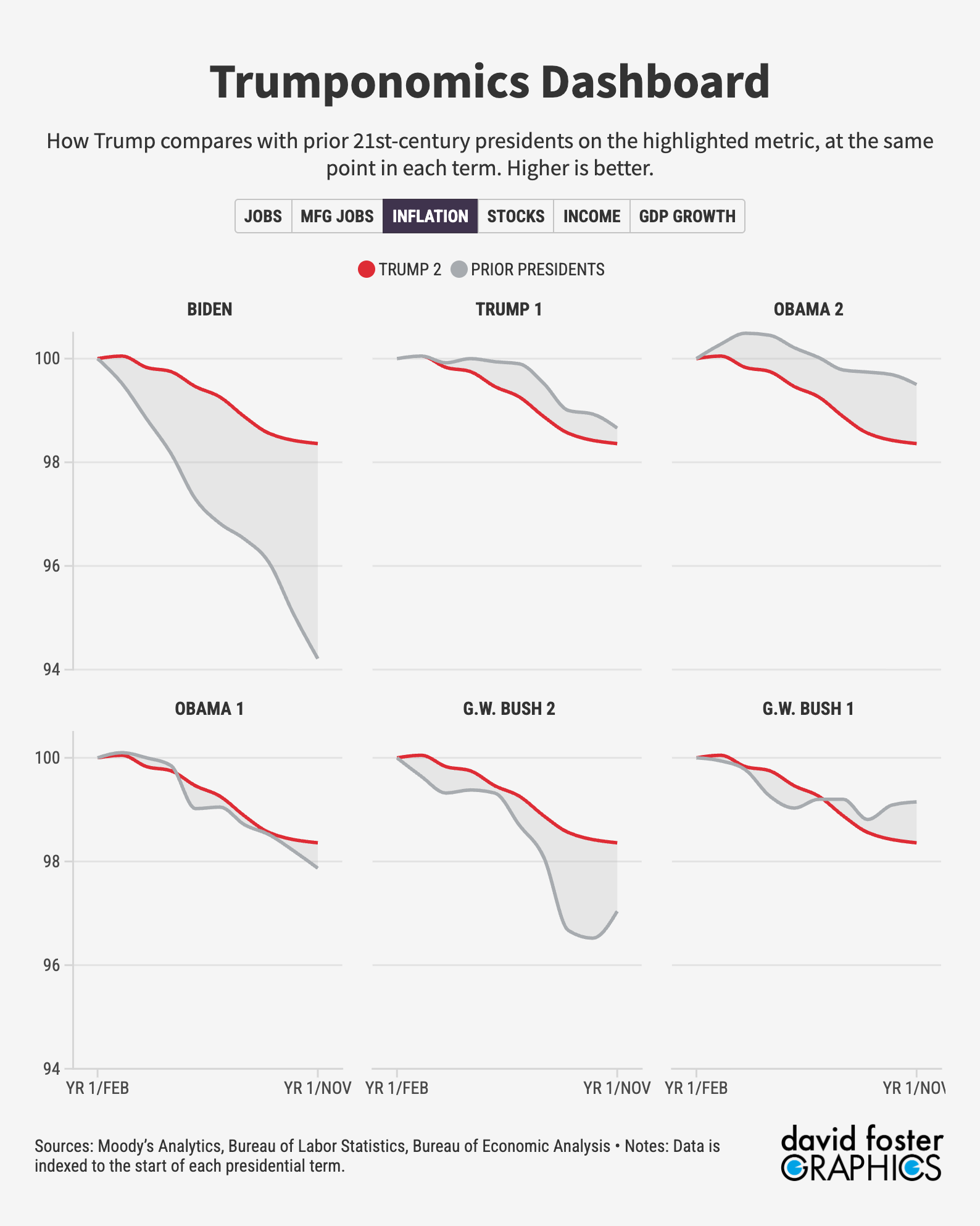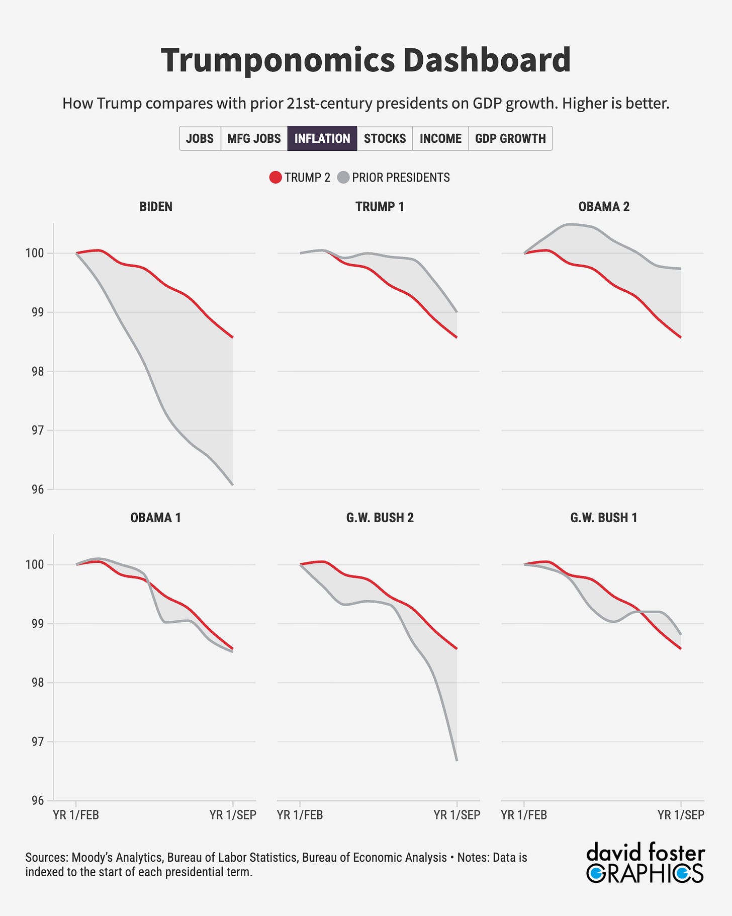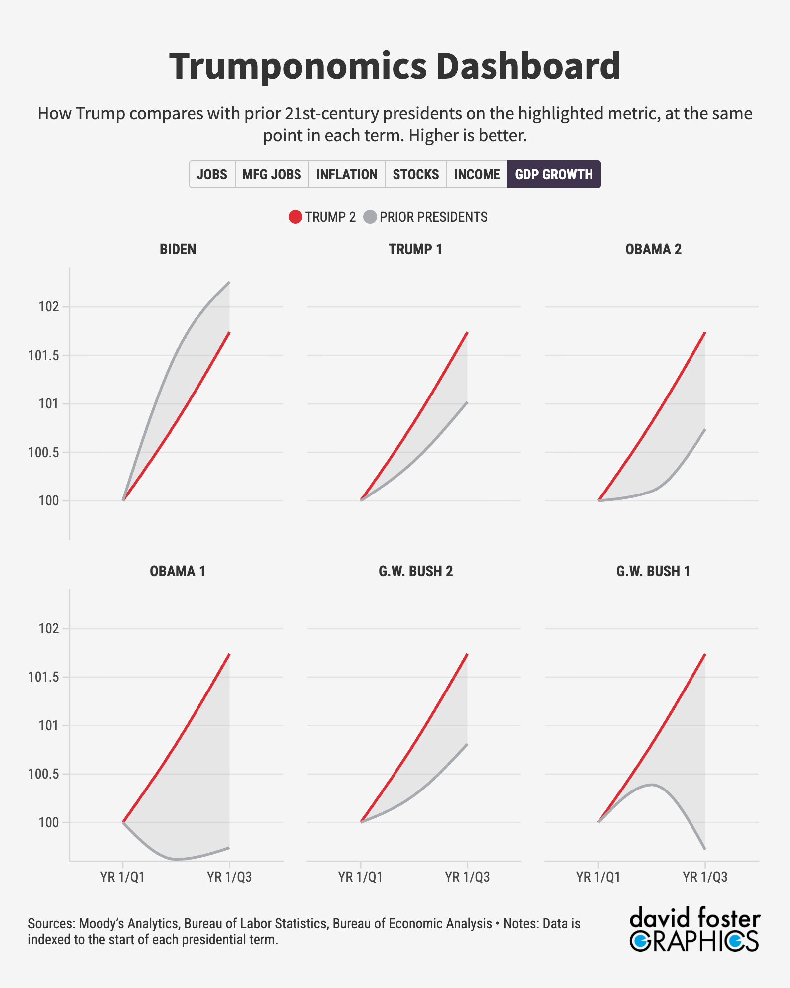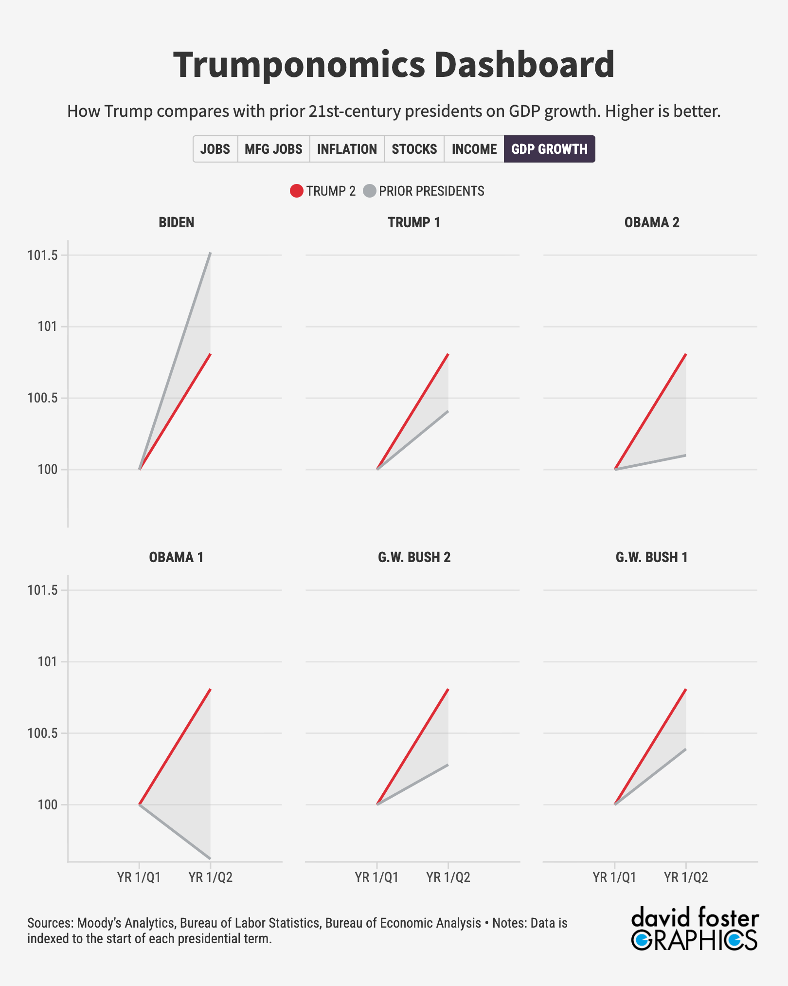 Our unique Trumponomics Dashboard lets you compare the Trump economy with that of prior presidents going all the way back to Jimmy Carter in the 1970s.