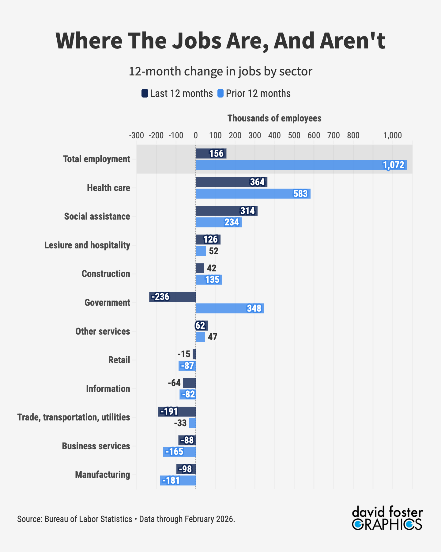 Who needs jobs? Buried in a cavalcade of war news was a lousy jobs report, which showed the economy losing 92,000 jobs in February. Recent confidence surveys that showed rising concerns about job security turned out to be right, which means ordinary Americans are sussing out the economy’s weaknesses before they shows up in the actual data. There was a bigger loss of 140,000 jobs in November, but that was right after the government shutdown and economists didn’t trust the data. Zoom out, however, and the job slump clearly correlates with Trump’s presidency and the onset of his foolhardy tariffs: