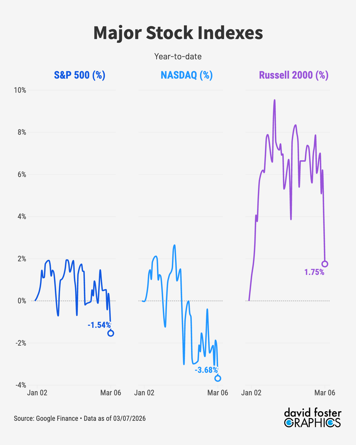 Stocks take some incoming. Trump bragged about a “record” stock market over and over in his February 24 State of the Union speech. The stock market apparently wasn’t listening. Stocks had a lousy week, with the S&P 500 down 1.3%, mostly on concerns about spiking oil prices. The S&P is down 1.5% for the year, with the NASDAQ down 3.7%. Trump couldn’t contain himself when the narrow Dow index hit 50,000 for the first time on February 6, and his aides worked that talking point into all their public remarks. Well, the Dow has fallen back to 47,502. If Trump is lucky, he’ll get to celebrate Dow 50,000 all over again.