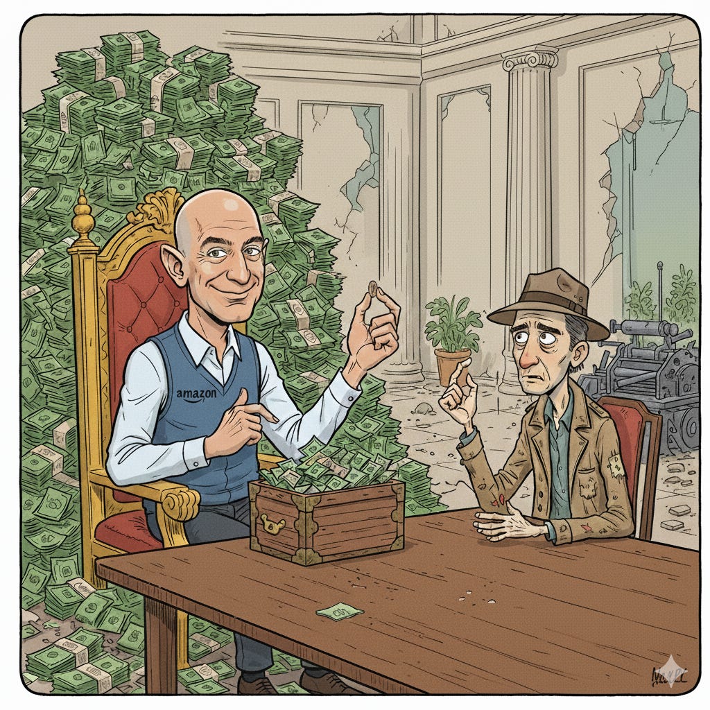 My news feeds are filled with rants and laments about the bloodletting at the Washington Post, where billionaire owner Jeff Bezos just canned some 30% of the newsroom staff. As a fellow journalist who’s been laid off myself, I certainly empathize.