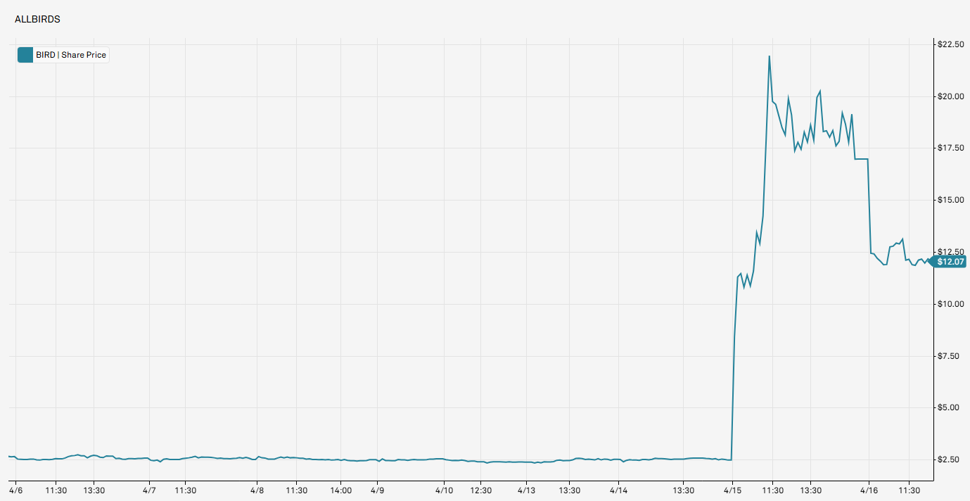 Sounds scammy, but the news sent the stock soaring 582% in one day. So BIRD is now a meme stock. Maybe that will help sell some sneakers. They’re still available, and cheaper than they were a few years ago.