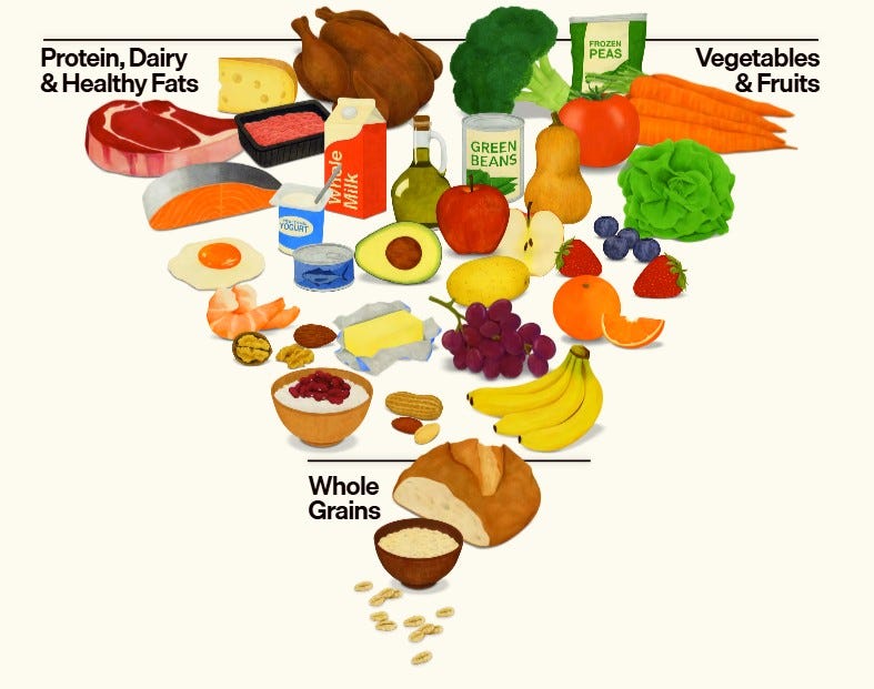 At any rate, you’ll be delighted to know the food pyramid is back. The government retired that in 2011 and replaced it with “MyPlate,” which users could customize on a web site. RFK brought back an inverted food pyramid, with steak, chicken, broccoli and cheese at the top. Whole grains get banished to the bottom. But it’s a Rorschach test and some people’s eyes might start at the bottom, where the whole grains are, the way you’d see the first ball in a billiards triangle. It kinda makes you wish Elon Musk’s DOGE commission had gotten rid of federal food guidelines instead of the Agency for International Development.