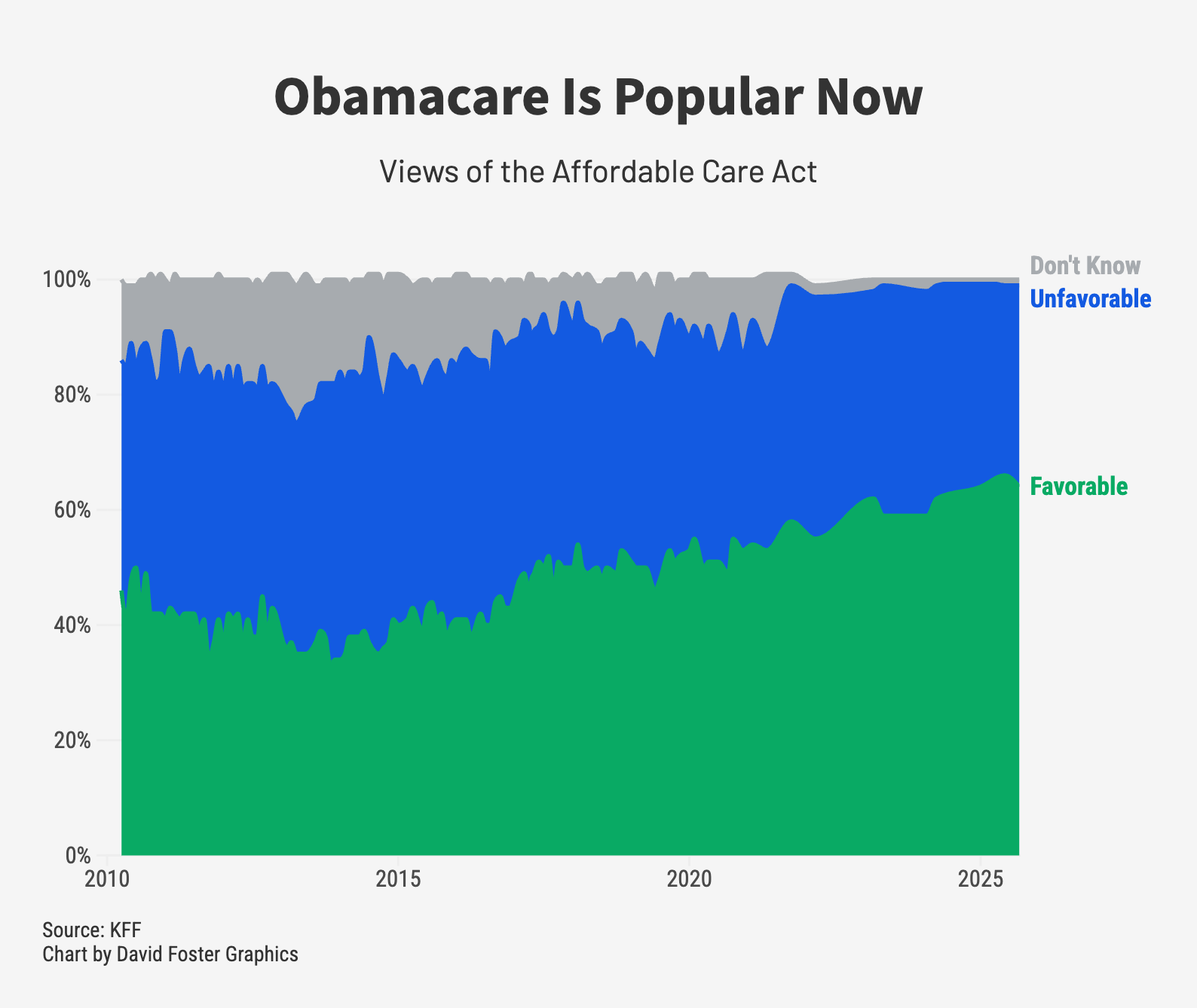 Attitudes about health care matter now because Democrats are refusing to reopen the government until Republicans make a deal with them on health care subsidies. A set of tax credits that lowers insurance costs under the Affordable Care Act is set to expire at the end of the year. If they do, about 4 million Americans will lose coverage and millions of others will pay a lot more.